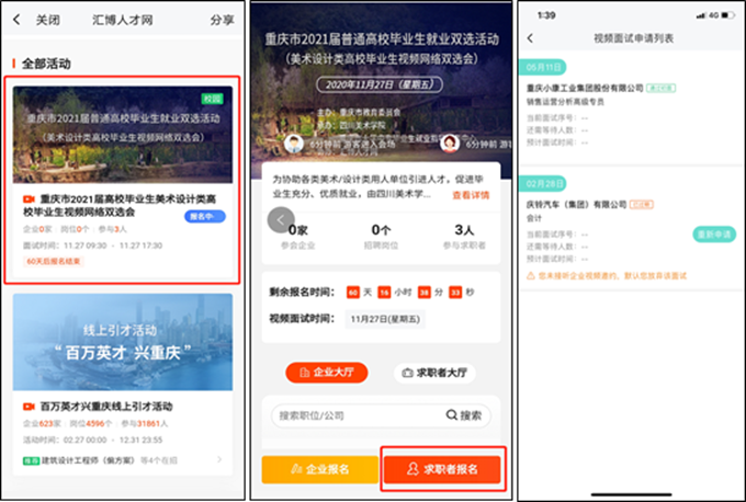 2、建议使用网络流量进行视频面试,部分wifi有延迟导致无法及时接通或接通后无页面。