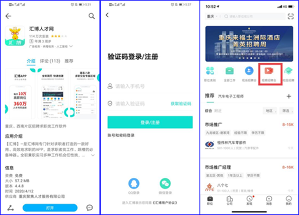 手机面试:需提前准备好设备,下载登录“汇博招聘APP”,选择企业登录入口登录根据新手教程引导操作;