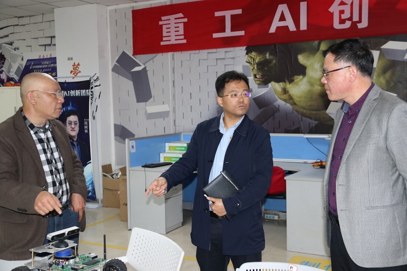 肖局长一行来到我校创新创业园区后,在校长桂国庆、校长助理周龙福和简玉刚等领导的陪同下,走访参观了园区内的教学和实习基地。桂校长向来宾介绍了园区基本情况、建设计划和我校学生近年来在创新创业领域竞赛中取得的优异成绩。
