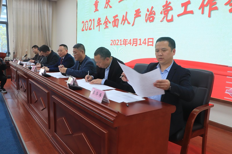 党委副书记张业平要求学校各单位、各部门要认真做好会议精神的传达,切实增加责任感和使命感,牢固树立底线思维,强化红线意识,按照签订责任书的条款,对标对表,层层压实责任,推动全面从严治党、党风廉政建设向纵深发展,营造风清气正的工作氛围,以优异的成绩庆祝建党100周年。