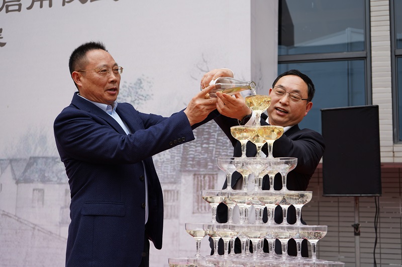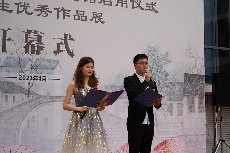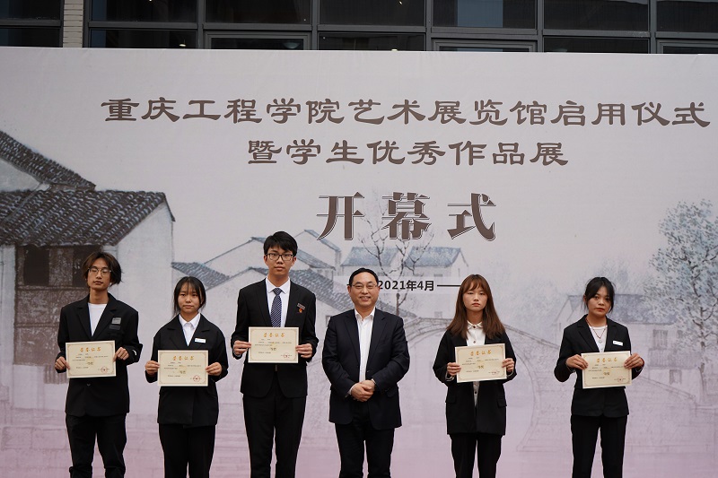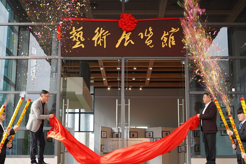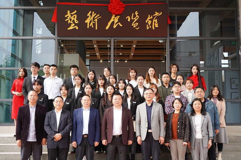 随后,学校董事李德志、校长桂国庆共同为艺术展览馆揭牌,党委书记谭明术、党委副书记兼常务副校长张业平一同开启庆祝香槟,谭书记现场宣布优秀作品展活动正式开始。
