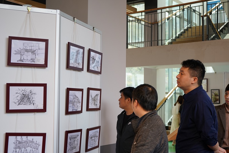 仪式结束后,部分师生代表与领导们在展览馆前合影留念,合影结束后,全体人员进入展区,展品的创作同学现场向各位参观者讲解自己的作品。据悉,此次艺术展共展出了381幅作品,展览活动将持续一周。