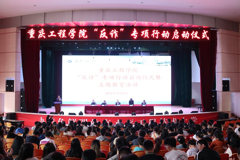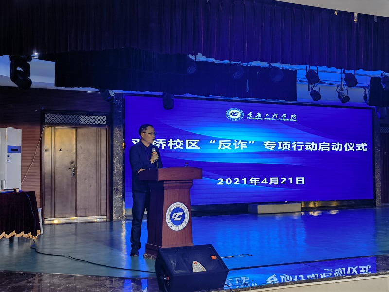 本网讯(文/图 保卫处文豪 通识学院 万乙豆 大学生记者团 官成成)为切实增强全校师生防骗意识,构建师生防范电信网络诈骗长效机制,有效遏制电信网络诈骗在我校的频发态势,4月21日下午14点30分,我校南泉校区、双桥校区分别开展了“反诈”专项行动启动仪式暨主题教育活动。党委副书记兼常务副校长张业平、纪委书记兼工会主席唐小勇、校长助理王建东出席南泉校区启动仪式,副校长蒋国华出席双桥校区仪式活动,全校各二级学院党总支书记、学工办主任、辅导员、各职能部门安全管理员,2018级、2019级、2020级各行政班班干部代表1500余人参加,两个校区的辖区公安分局反诈中心警官、派出所负责同志应邀参加并作主题教育。