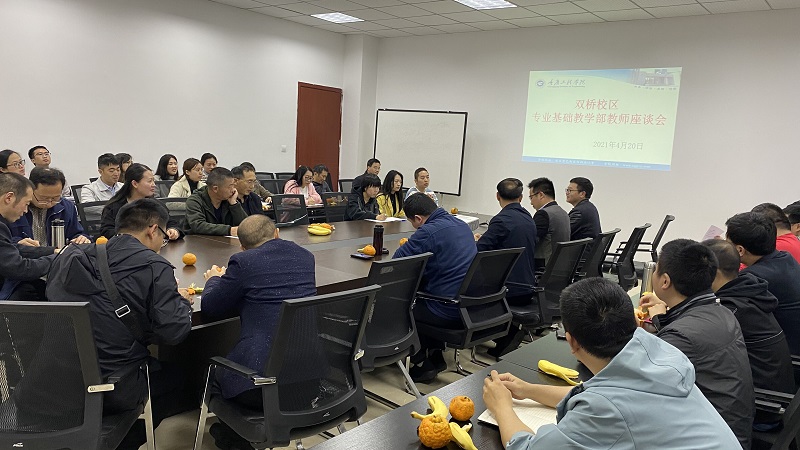 本网讯(文/图 通识学院 杨佳丽)4月20日下午,双桥校区组织召开了专业基础教学部教师座谈会,会议由双桥校区教学事务办公室副主任张懿爵主持,副校长、双桥校区管委会主任蒋国华,双桥校区管委会副主任、通识学院副院长严伟,双桥校区党总支副书记、双桥校区学生事务办公室主任孙建及二级学院驻双桥全体教师参加。