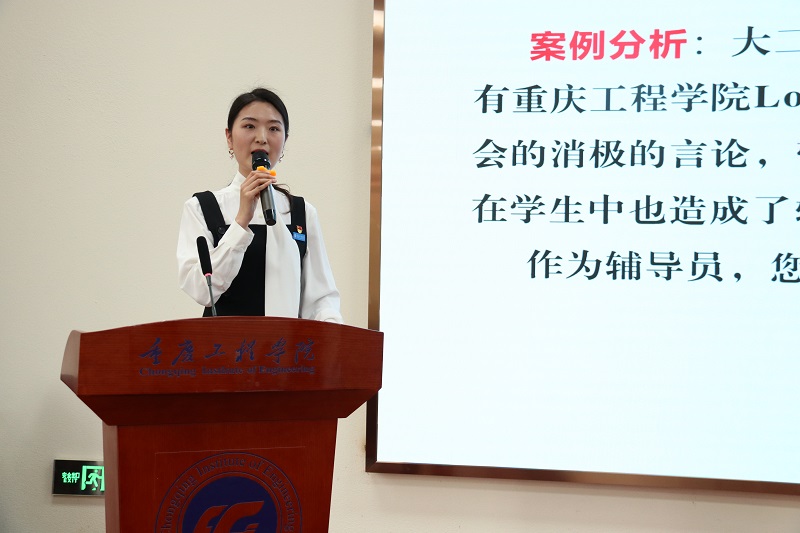 下午14点10分,大赛决赛在南泉校区行政楼201会议室正式开始,原重庆工商大学党委书记、重庆市历届高校辅导员素质能力大赛本科院校组专家组组长周希贤教授应邀担任大赛总评审,校长助理王建东,学生处处长黄燕,就业指导中心主任吴优,大数据与人工智能学院党支部副书记尚伟担任现场评委。各二级学院书记、学工主任以及全体辅导员、学生代表约90人来到现场观摩学习。