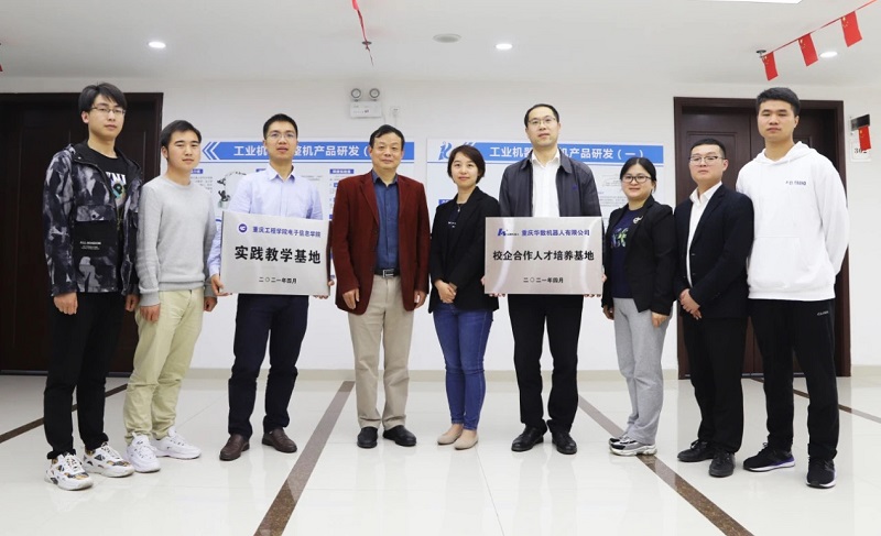 本网讯(文/图 电子信息学院 黄炼旗)4月29日,我校电子信息学院与重庆华数机器人有限公司共建实践教学基地授牌仪式在两江新区水土高新技术产业园举行,电子信息学院院长何世彪、副院长陈成瑞、重庆华数机器人常务副总王旭丽、重庆智能机器人研究院副院长夏亮、重庆华数机器人教育服务事业部部长黄学彬出席。