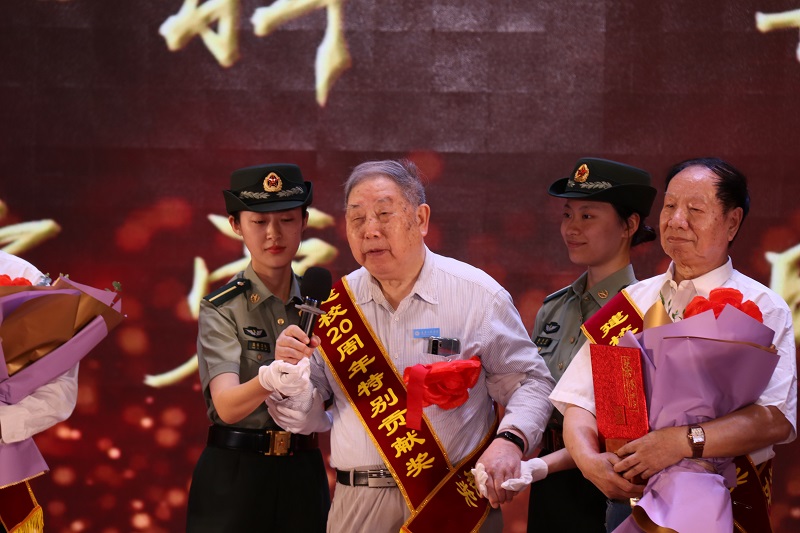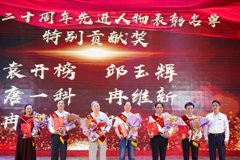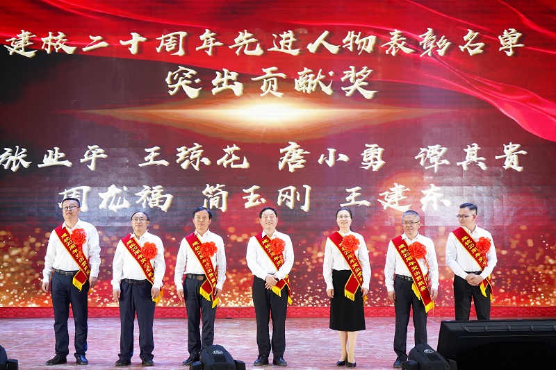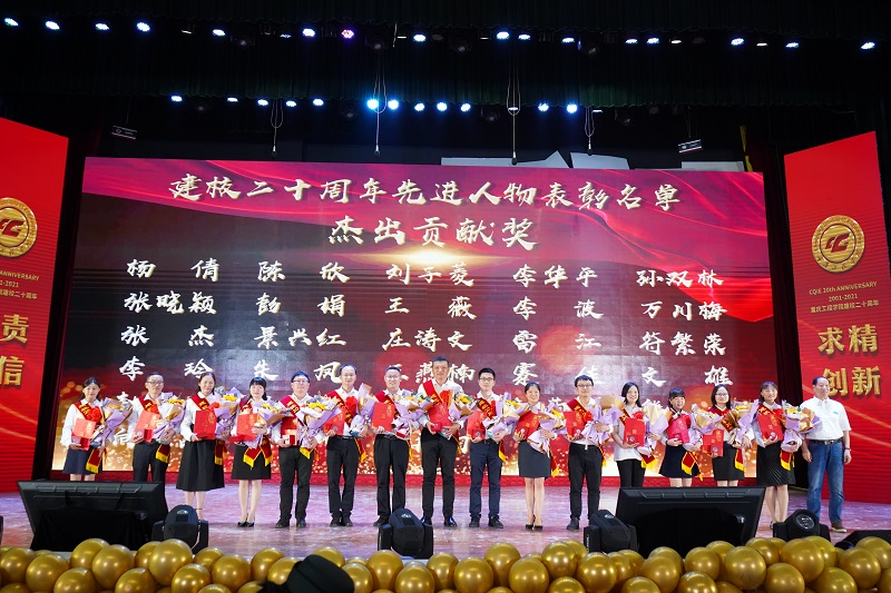 张业平、王琼花、唐小勇、谭其贵、周龙福、简玉刚、王建东获得“突出贡献奖”,学校董事李德志为获奖者颁奖。党委副书记兼常务副校长张业平作为代表发言时感慨到:“20年来学校的变化很大,变得越来越美丽,老师们专业过硬,同学们青春自信,学校今后将不忘初心,牢记使命,继续朝着目标坚定前行。”