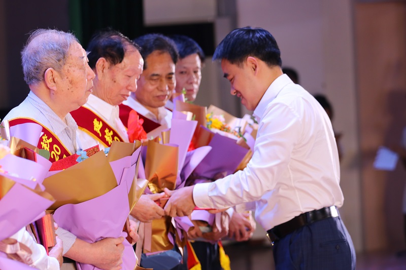 在“特别贡献者”颁奖环节,袁开榜、邱玉辉、唐一科、冉维新、冉启蓉、明智六位老领导悉数上台,从董事长王万均手中接过了获奖证书,此时全场师生集体起立,向老一代重工人致以崇高敬意。87岁高龄的袁开榜校长用年迈而有力的声音送上祝福:“我希望重庆工程学院可以越来越好,越来越棒,成为中国的一流民办大学,祝重工生日快乐!”