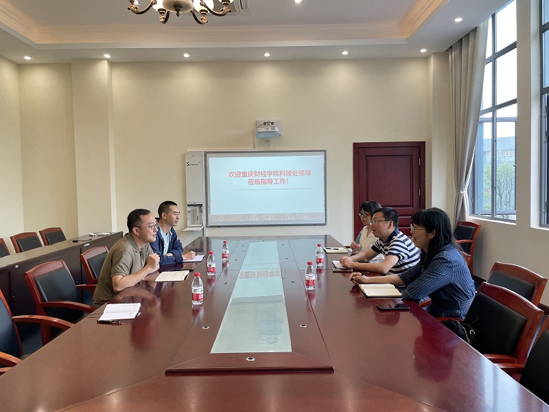 本网讯(文/图 科技处 李世毅)5月13日上午,重庆财经学院科技处处长张立一行来到我校学习考察,校长助理周龙福会见了来宾,双方就科研项目管理、科研平台管理、科研成果转化及学科建设发展等方面展开了深入交流。