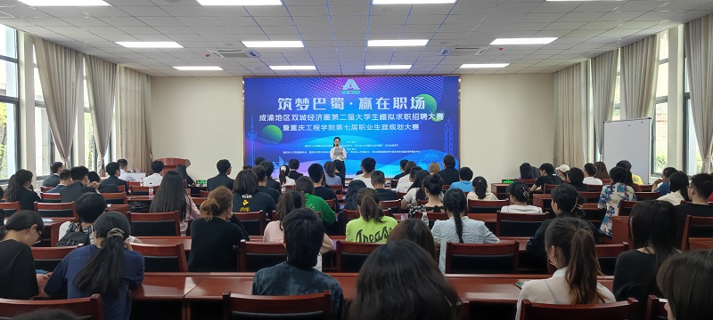 本网讯(文/图 招就处 叶秋清)为培养在校生职业生涯规划意识,树立良好的就业观,增强职业胜任力和就业竞争力,5月12日下午,我校举办了“成渝地区双城经济圈第二届大学生模拟求职招聘大赛暨重庆工程学院第七届职业生涯规划大赛”校级决赛。本次大赛邀请到了重庆理工大学管理学院人力资源管理系主任谭建伟教授、重庆中航集团人力资源经理邱爽、重庆微铭汇信息技术有限公司总经理助理冉宏德,我校素质教育中心主任邹春霞、招生就业处副处长吴优共同担任评委。