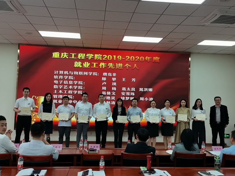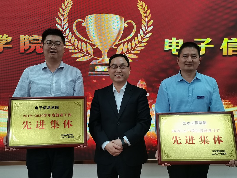 会上,吴优现场宣读了《关于表彰2019-2020学年度就业工作先进集体和先进个人的决定》,其中电子信息学院、土木工程学院获评先进集体,魏克非等13名就业工作者获评先进个人,张业平现场为受到表彰的先进集体颁发荣誉证书,王建东为就业工作先进个人颁发奖牌。