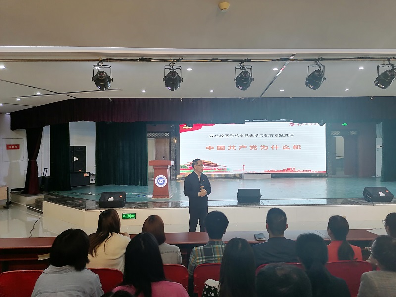 本网讯(文/图 通识学院 万乙豆)为庆祝中国共产党成立100周年,贯彻落实习近平总书记在党史学习教育动员大会上的讲话精神,5月26日晚,双桥校区党总支在报告厅开展了“学党史 忆初心 担使命”主题党日活动,校区全体党员教师参加。