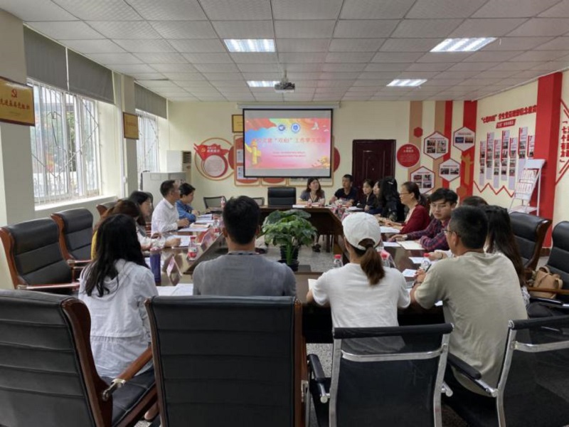 本网讯(文/图 管理学院 荣菁菁)为进一步推进“双创”工作深入开展,相互学习交流“双创”工作经验和成功做法,5月28日上午,重庆科技职业学院通识学院院长何辉、党支部副书记田圆、专职组织员周浩、党支部组织委员陈月、党支部宣传委员谭晓庆及通识学院全体教师党员到我校管理学院进行高校党建“双创”工作学习交流,管理学院党总支书记刘达斌、专职组织员荣菁菁、学生第一党支部书记宋曼、学生第二党支部书记曾艳灵、学生第一党支部组织委员罗雪出席了本次会议,会议由荣菁菁同志主持。