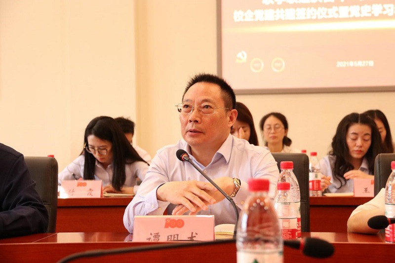 会上,谭明术同志代表学校向来宾们致欢迎辞,从“有认识、有载体、有氛围、有成果”四个方面总结了我校党建工作开展情况。金宝保公司党支部和软件学院党总支签署校企党建共建协议,双方领导为结对支部授牌。管理学院党总支书记刘达斌、软件学院党总支书记刘子菱、集团第四党支部书记潘妍、金宝保公司党支部书记邱珂分别介绍了各支部党建工作的特色、经验和成果。学校思政部教师郑几纬从党史学习理念入手,解析了新民主主义革命时期的历史经验和历史意义。部分党员代表结合本职工作,对照“学党史、悟思想、办实事、开新局”的学习目标,分享了在党史学习中的思考、感悟和体会。