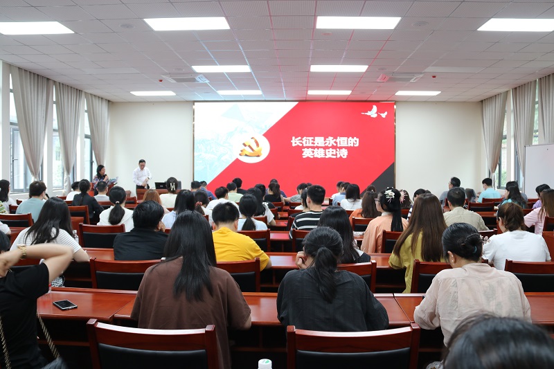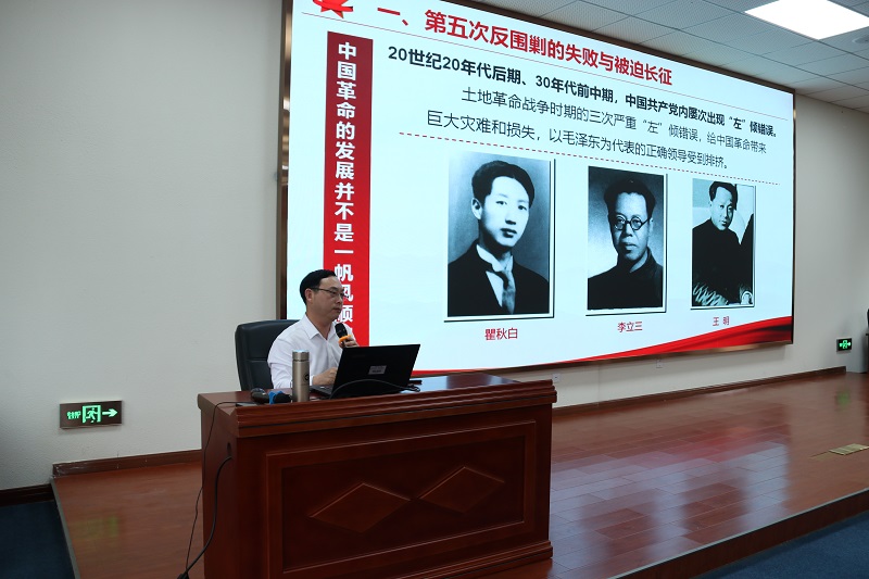 张书记的授课主要围绕长征发生的历史背景、长征的过程、长征精神的内涵、长征精神带给我们的启示等四个方面展开,张书记讲课语言生动、例子鲜活,师生们深受启发和教育。