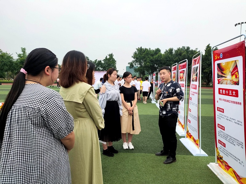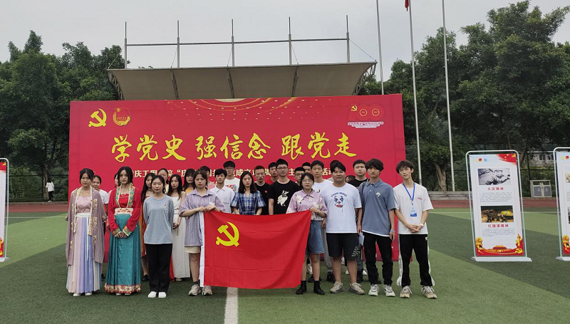 活动现场,全体班级团支部组织各班全体共青团员集中开展“与党旗合影,献礼建党100周年”主题活动。我校各学生社团积极响应,踊跃参与,50个学生社团紧紧围绕“学党史、强信念、跟党走”开展了结合社团文化特色的主题游园会。