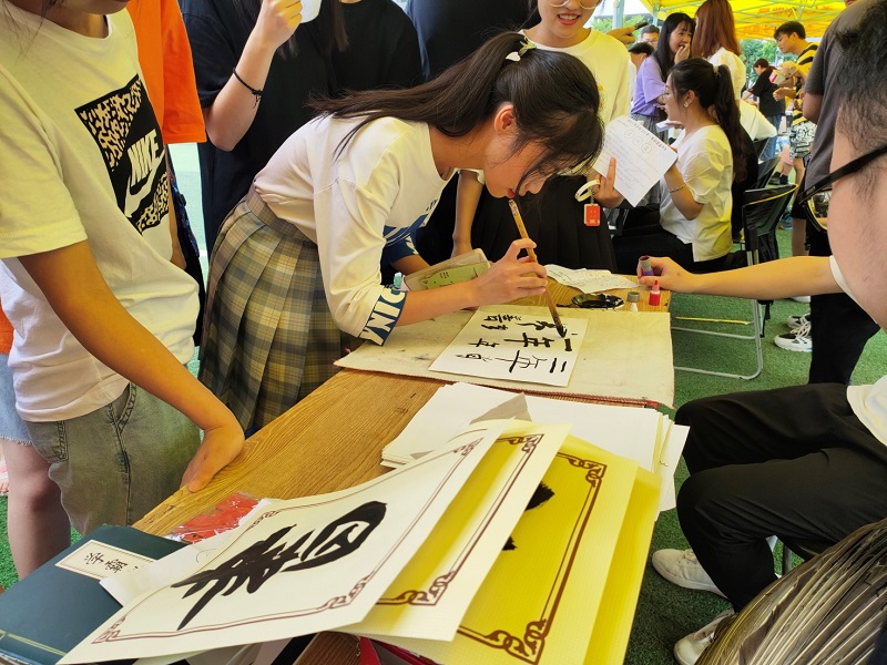 电子商务研习社的“党史快答”活动让同学们在游戏中牢记党史,笔墨文学社的“汉字,成语知多少”带大家领略了中国优秀传统文化的博大精深,书法协会现场展示了力透纸背、笔走龙蛇的高超技巧。此次社团游园会是学校庆祝建党100周年的重要环节,也是学生社团风采展示的重要载体,更是推动学生参与繁荣校园文化氛围、筑牢校园文化建设的重要手段。