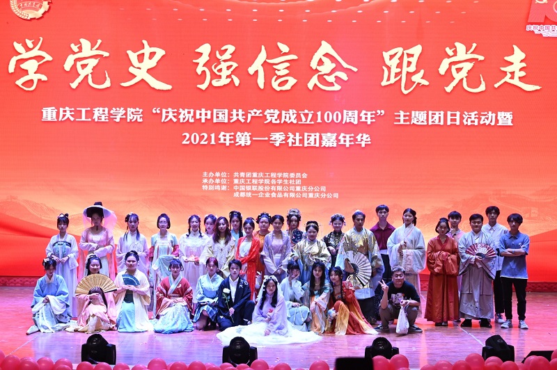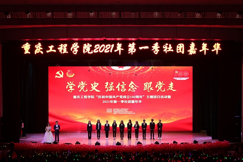 当晚19点,社团盛典活动在学术报告厅举办。重庆工程学院团委书记黄涛、校团委全体教师、各学院分团委书记、辅导员代表、教师代表与现场1000余名重工学子共同参加。