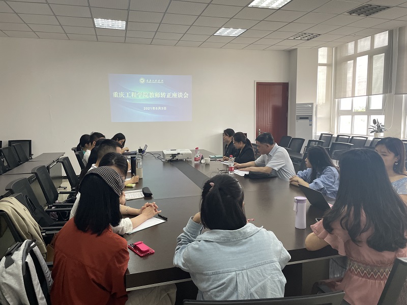 本网讯(文/图 双桥校区 王瑜琳)为进一步了解新进教师工作情况,增强新教师归属感,6月3日下午,我校领导在双桥校区二会议室召开了重庆工程学院转正教师座谈会,校长桂国庆、副校长王琼花出席,双桥校区参加转正的20余名新进教师参加了本次座谈会。
