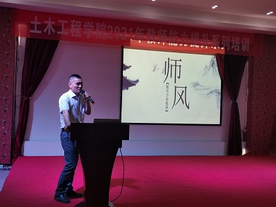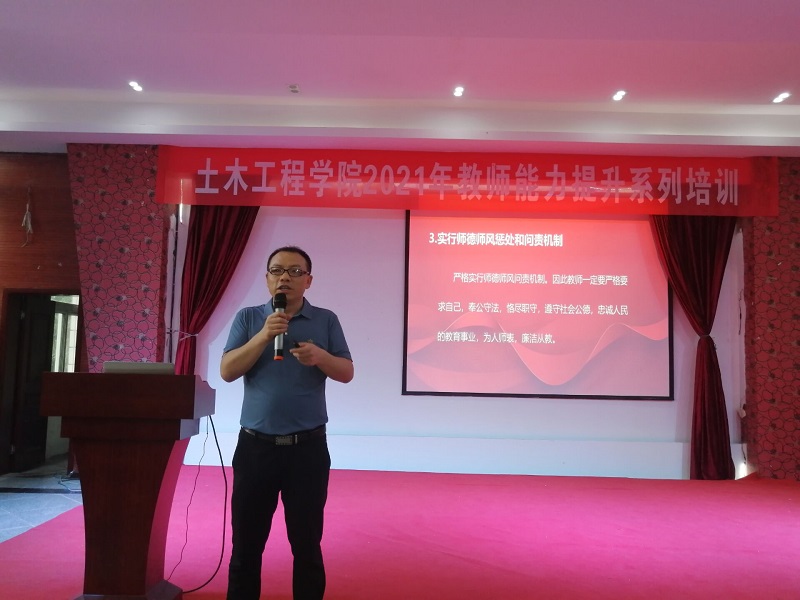 本网讯(文/图 土木工程学院 毛云莹)为深入贯彻党的十九大精神,全面加强教师队伍师德师风建设,响应学校“树师德、正师风,争做‘四有’好老师”的号召,6月9日下午,土木工程学院在三楼多功能厅举办了2021年教师能力提升计划第四次培训暨“师德师风大讨论”主题研讨活动,土木工程学院全体教职工参加。