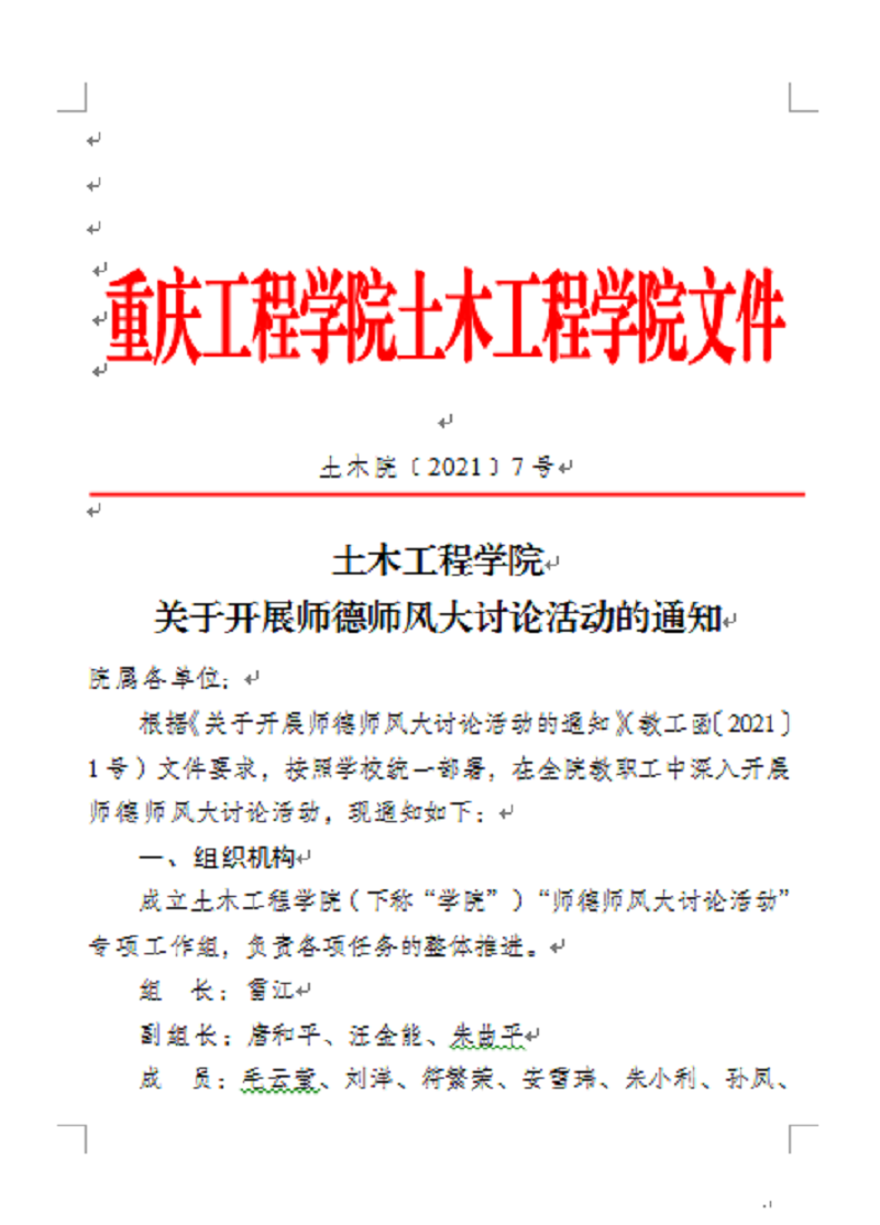 土木工程学院院长雷江领学了《中共中央国务院关于全面深化新时代教师队伍建设改革的意见》《高等学校教师职业道德规范》《高校教师职业行为十项准则》《高校教师师德禁行行为》以及学校关于师德师风建设等相关文件。雷院长强调,师德是作为一名人民教师最应坚守的底线,学院教师在日常工作当中要时刻谨记职业道德准则,恪守教师行为规范。