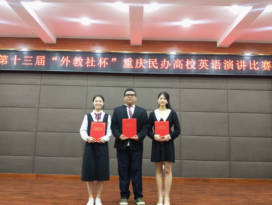 本网讯(文/图 通识学院 杨佳丽)6月5—6日,第十三届“外教社杯”重庆市民办高校/独立学院大学生英语演讲复赛、决赛在重庆外语外事学院举办。我校通识学院外语教学部组织学生参赛,4名参赛同学徐梓言、李毛毛、许思佳、唐曦从校内口语选拔赛中脱颖而出。6月5日举行的复赛中,李毛毛、许思佳及唐曦3名同学从32名优秀选手中顺利晋级入围决赛。在6月6日举行的决赛中,李毛毛(指导教师:蒋丽萍)获得市级“二等奖”;唐曦(指导教师:谭涛)、许思佳(指导教师:王誉蓉)获得市级“三等奖”。