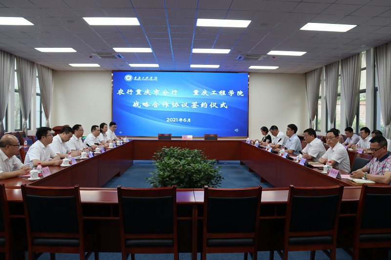 本网讯(文/大学生记者团 王彩梅 赵欣雨 图/大学生记者团 袁艺谋 徐淑萍)6月23日下午,我校南泉校区办公楼第四会议室举行了“农业银行重庆市分行 重庆工程学院战略合作协议签约仪式”。农行重庆市分行党委委员、副行长姜栋林,农行重庆市分行公司部总经理罗波,农行重庆市分行机构业务部副总经理何晓东,农行巴南支行党委书记、行长郑颖,农行巴南支行党委委员、行长助理魏毅,农行重庆市分行机构业务部客户经理倪樊,农行巴南支行公司业务部经理王冀,重庆工程学院董事长王万均,重庆工程学院董事李德志,校长桂国庆,党委副书记兼常务副校长张业平,校长助理杨桂、简玉刚,相关职能部门负责人共同参加了签约仪式。仪式由桂国庆主持。