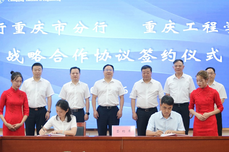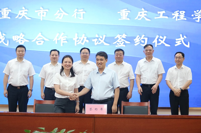 随后,农行巴南区支行党委书记、行长郑颖与重庆工程学院董事长王万均代表双方现场签订了战略合作协议,与会双方代表上台合影留念。