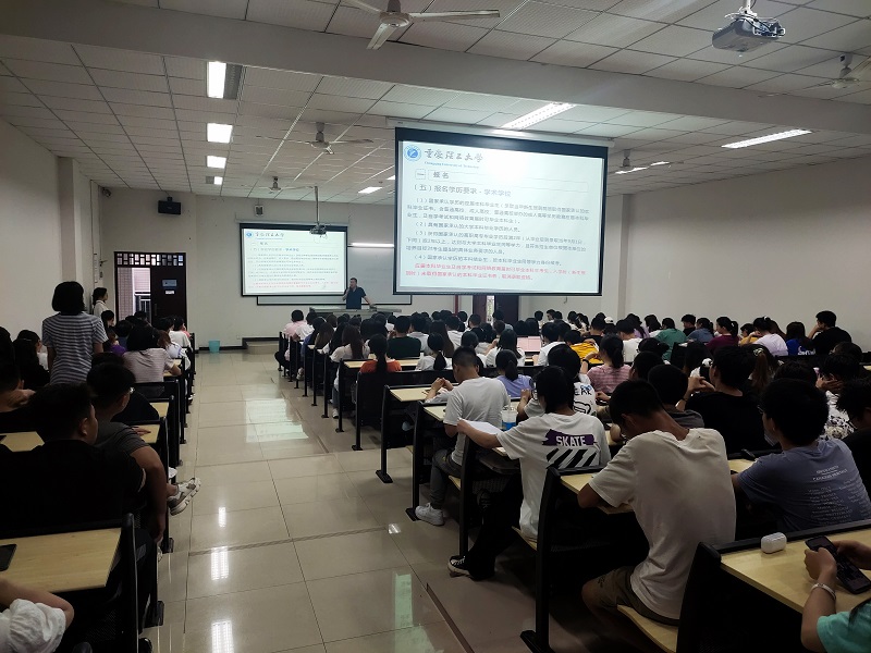 李恩主任重点围绕“为什么考研”和“考研报考初试”两个方面给我校考研学子做了详细指导交流。随后,理工大学研一学生王新生同学对重庆理工大学计算机学院进行了详细介绍和宣传,欢迎我校广大学子积极报考,还将自己考研复习、应试及面试经验与同学们进行分享。讲座现场座无虚席,我校考研学子频繁与老师交流互动,现场氛围热烈。