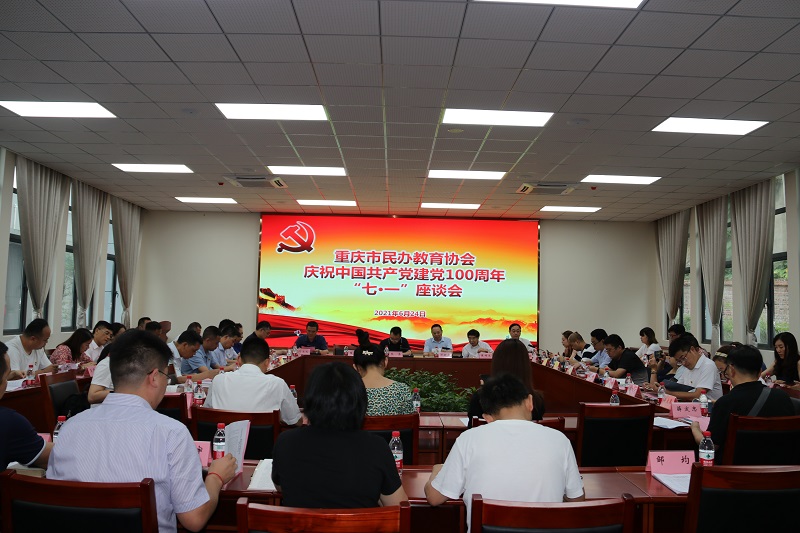 本网讯(文/组织部 李毅 图/大学生记者团 汪桂琼)6月24日下午,重庆市民办教育协会庆祝中国共产党建党100周年“七一”座谈会在我校召开。重庆市教育委员会民办教育处处长熊浩、市民政局社会组织管理局副局长程建、市民办教育协会负责日常工作、党支部书记张文礼,重庆市民办教育协会原常务副会长陈传文、市民办教育协会副会长秦宗红、黄显荣等领导出席,重庆市民办教育协会党建工作委员会的全体成员、各专委会、各区民办教育协会代表,重庆工程学院部分师生党员代表60余人参会。会议由重庆工程学院党委副书记兼常务副校长、市民办教育协会副会长、党建工委副主任张业平主持。
