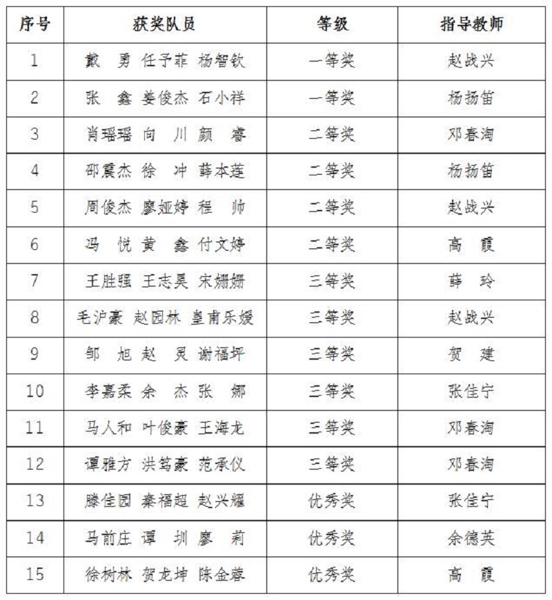 数学建模比赛已经成为重庆工程学院以赛促教的抓手,引领着我校师生在数学教学与研究的路上越走越宽广。通过此次竞赛,参赛学生不仅在数学知识、计算机知识和论文写作等方面的锻炼,而且还培养了参赛学生的团队协作精神和创新意识,有利于提高学生的综合素质。