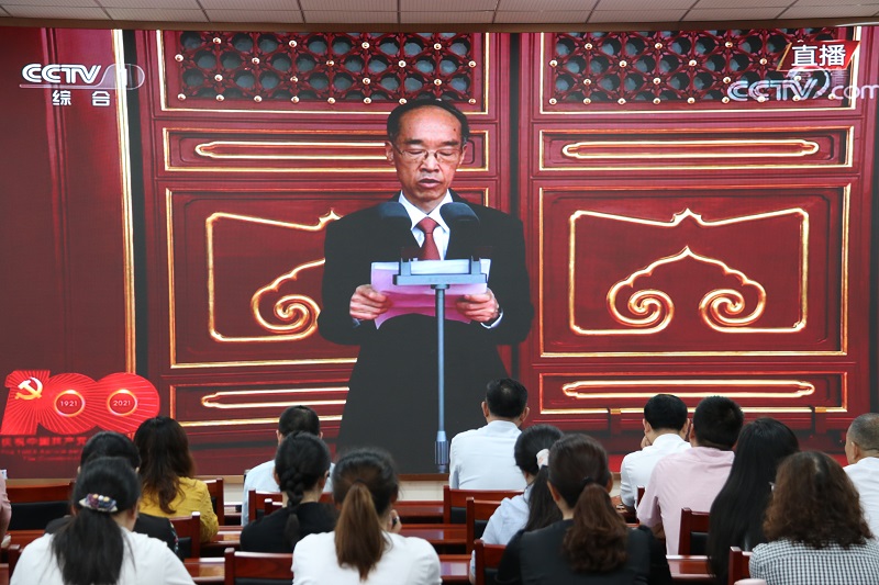 本网讯(文/图 党委宣传部)百年征程波澜壮阔,百年初心历久弥坚,2021年7月1日上午八点,庆祝中国共产党成立100周年大会在北京天安门广场隆重举行,中共中央总书记、国家主席、中央军委主席习近平发表了重要讲话,我校全体师生通过多种方式观看大会直播。