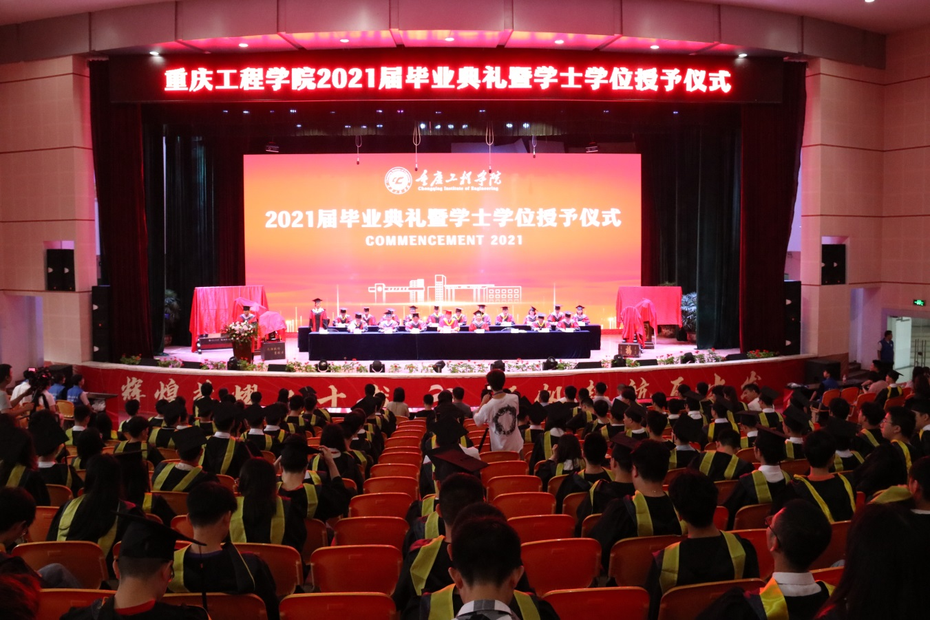 本网讯(文/大学生记者团 周云慧 赵欣雨 图/大学生记者团 袁艺谋 王浩宇 吕浩)7月2日上午,重庆工程学院2021届毕业生毕业典礼暨学位授予仪式于学术报告厅举办。校长桂国庆,党委书记兼督导专员谭明术,副校长王琼花,纪委书记唐小勇,校长助理谭其贵、杨桂、周龙福、简玉刚、王建东,校院两级学位委员会委员代表,各二级学院院长、党总支书记,职能部门代表以及2021届毕业生代表参加典礼,典礼由谭明术主持。此次典礼采用线上线下相结合的方式进行,全校师生均可通过在线视频观看同步直播。