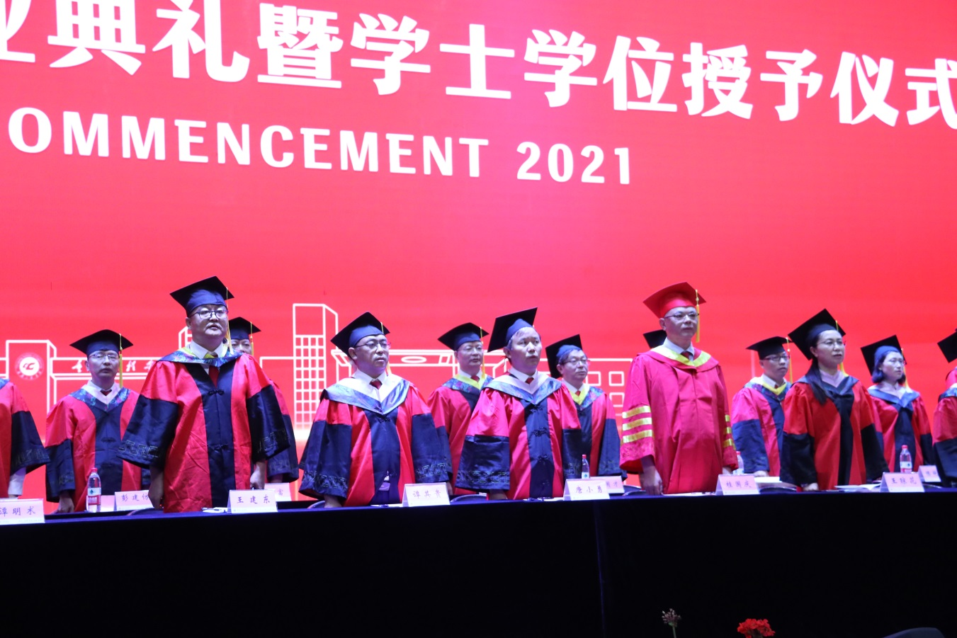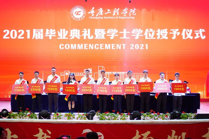 杨桂现场宣读了《重庆工程学院关于准予2021届尉晨雷等3022名本科生、段光艮等754名专科生毕业的决定》和《重庆工程学院学位评定委员会关于授予毕业生尉晨雷等3029人学士学位的决议》。王建东现场宣读了《重庆工程学院关于表彰2021年优秀毕业生的决定》,正式获得学位和受到表彰的毕业生们依次上台领奖。