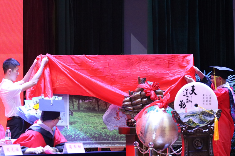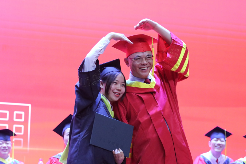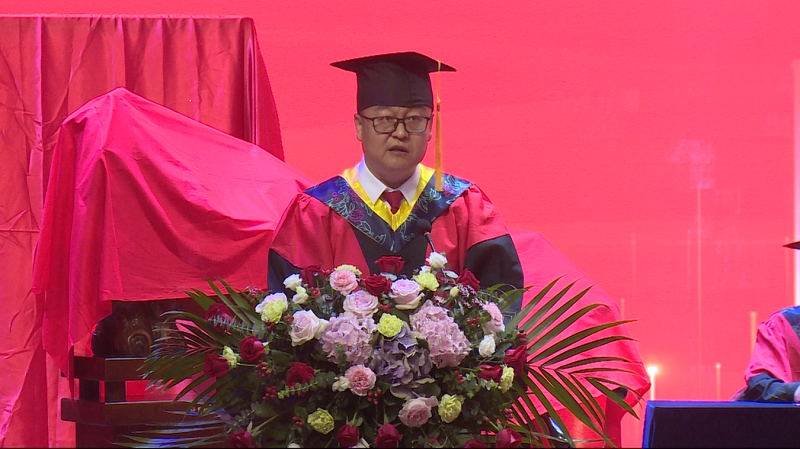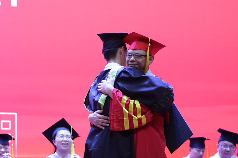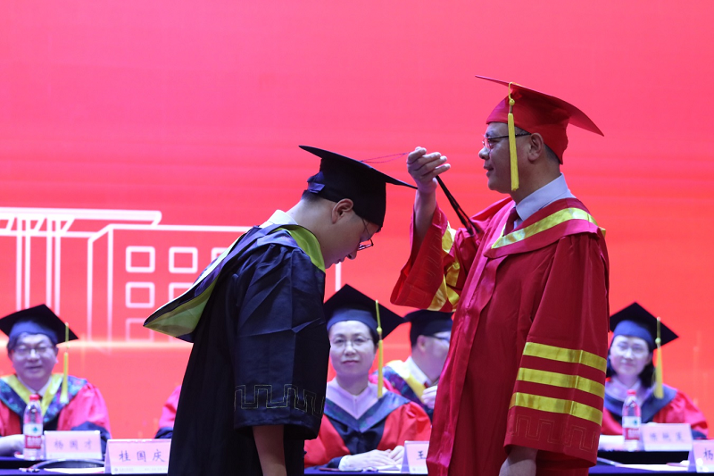 颁奖结束后,会场内正式举行毕业生学位授予仪式,校长桂国庆上台依次为同学们拨穗、颁发证书并合影留念。