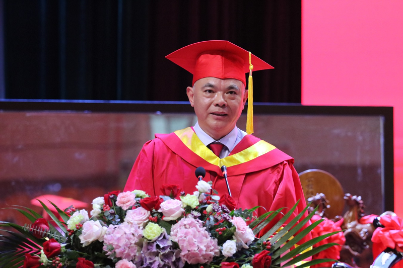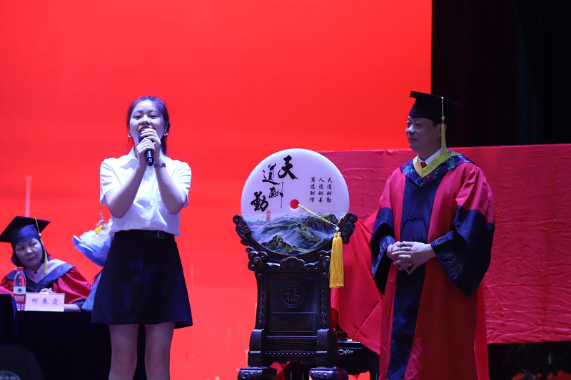 之后,桂国庆上台作总结讲话,桂校长对即将踏上人生新征程的全体毕业生们表示祝贺,对学校教师和家长们表示衷心感谢。离别之际,桂校长对在场的同学们送上了来自母校最后的嘱托和叮咛:第一,要厚植家国情怀,坚定理想信念;第二,要厚实修养才华,坚定学习信仰;第三,要厚培实干精神,坚定进取之心;第四,要厚织阳关心态,坚定无悔青春。桂校长希望全体毕业生们今后在事业上有盼头、有奔头,工作上有劲头、有干头,生活上有想头、有甜头。