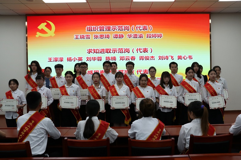 会上,全体人员齐唱国歌,党委组织部长邹均宣读《中共重庆工程学院委员会关于命名2021年大学生党员“十佳示范星”和“十佳示范岗”的决定》。刘小清等10名同志被命名为2021年大学生党员“十佳示范星”,石化佳等91名同志被命名为2021年大学生党员“十佳示范岗”,与会领导为受命名的学生党员代表颁发证书。