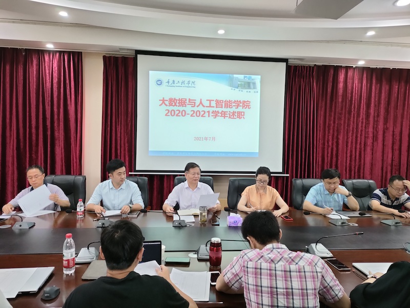 本网讯(文/大数据与人工智能学院 唐蕾 图/大数据与人工智能学院 石芳)根据学校2020-2021学年教职工考核工作安排,我院于7月9日在学校第七会议室组织专任教师、辅导员开展学年度考核总结述职。院长曹耀钦、党支部副书记尚伟、副院长陈欣、杨倩及全体教师参会,新入职教师受邀观摩学习。会议由院长曹耀钦主持。