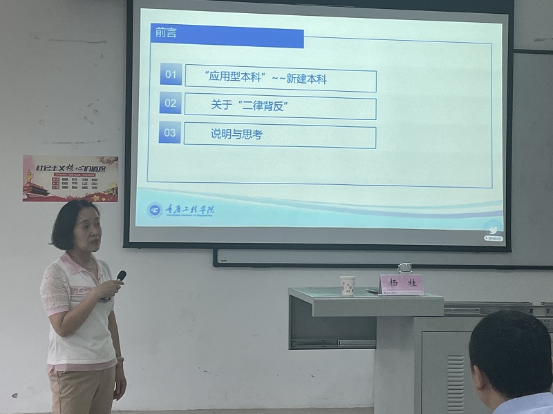会上,杨桂助理以“应用本科与高职教育的差异”为主题,首先阐述了应用型本科与高职教育的定义差别,然后从政策视角、人才培养定位、人才培养方案制定、课程体系设置、教学大纲等几个方面展开剖析,并以服装专业专科、游戏策划专科等实例示范了应用本科与高职本科教育各方面的区别。同时讲解了教学中讨论法的基本要求,包括问题要有吸引力、有争议、有价值,并要线上线下结合组织。最后杨助理提出希望教师们在实际教学工作中要不断思考和实践,争取教学意识和能力不断进步。