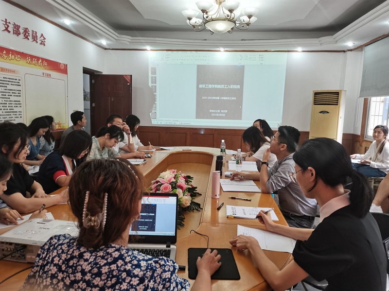 本网讯(文/图 建筑学院文化宣传部 龚艳红)9月8日下午,建筑工程学院在学院办公楼212会议室组织开展了2021年秋季新员工培训,培训由院长雷江和办公室主任毛云莹主讲,全体新员工参加了培训。