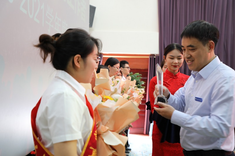 张业平宣读了《关于表彰2020-2021学年度先进个人及优秀教学团队的决定》,对2020-2021学年度,在人才培养、科学研究、党政管理、队伍建设、条件保障等方面做出突出成绩的先进团队和个人予以表彰,其中优秀教学团队2个,优秀教师10名,优秀教育工作者2名。