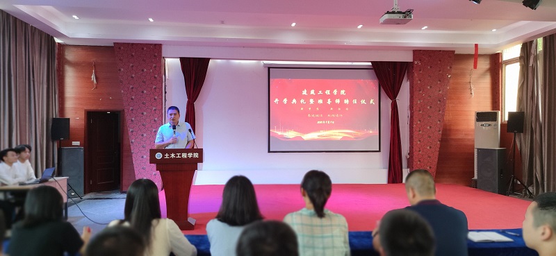 本网讯(文/杨蕾 图/赵长成)为加强对学生学习生活的教导指引,培养努力拼搏、积极进取的学习精神,营造浓厚的学习氛围。建筑工程学院于9月9日分别在建筑工程学院三楼多功能厅、6301和6302教室分专业同时举行了2020级学生开学典礼暨班导师聘任仪式。建筑工程学院院长雷江、党总支书记唐和平、副院长汪金能、各系主任、班导师、全体辅导员以及2020级建筑工程学院全体学生参加了典礼。
