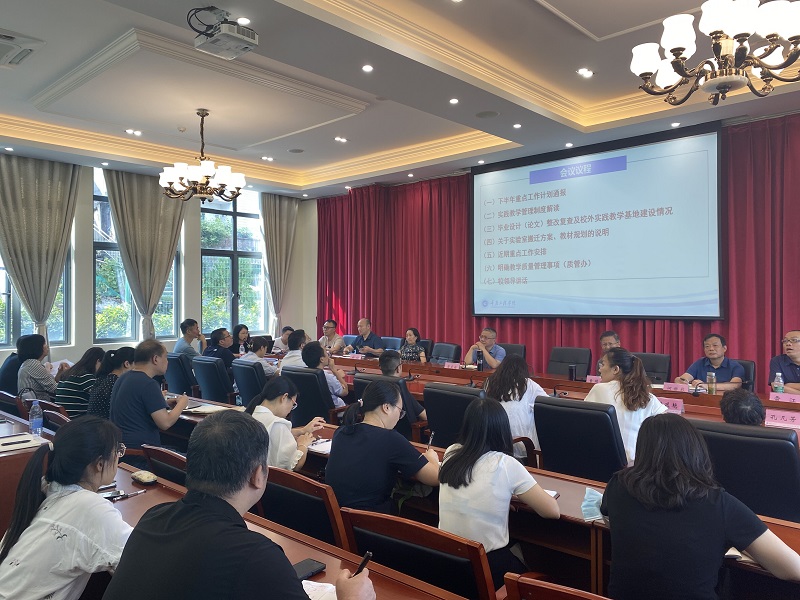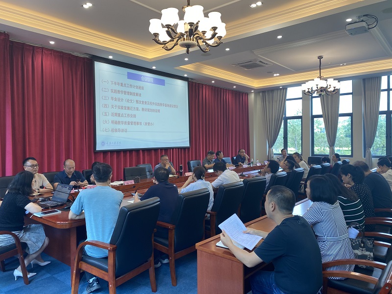随后,教务处通报了毕业设计(论文)整改复查中发现的典型问题以及校外实践教学基地建设情况;汇报了关于实验室搬迁的具体事项和时间安排;并对教材建设规划工作任务进行了详细说明。