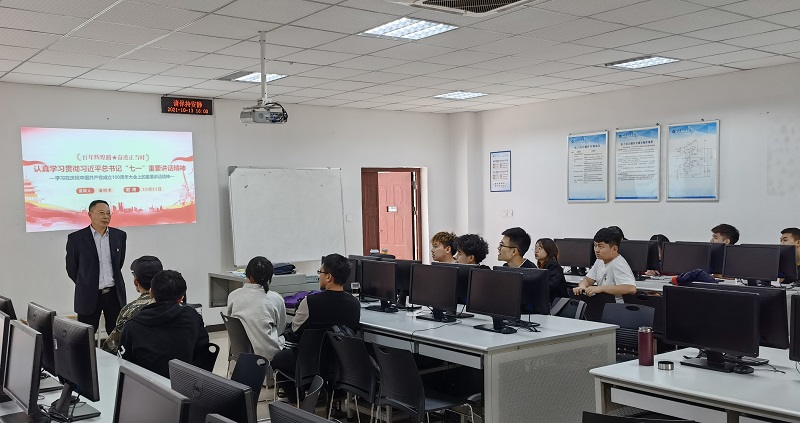本网讯(文/图 大数据与人工智能学院 尚伟)为深入学习贯彻习近平总书记“七一”重要讲话精神,推动党史学习教育深入开展,结合学校关于党史学习教育的相关文件要求。10月13日,党委书记兼督导专员谭明术深入大数据与人工智能学院,为人工智能专业社团开展宣讲授课,社团全体成员、指导教师参加。