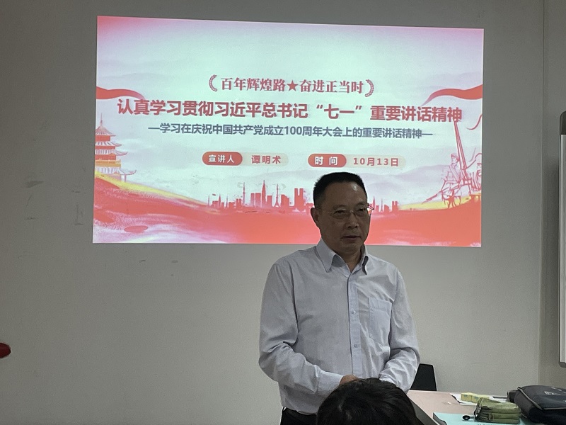 谭明术首先对习近平总书记“七一”重要讲话精神的重要内涵进行了详细解读。他指出,习近平总书记“七一”重要讲话,站在统筹中华民族伟大复兴战略全局和世界百年未有之大变局的时代高度,回顾光辉历程、展望光明前景,是一篇马克思主义纲领性文献,是新时代中国共产党人不忘初心、牢记使命的政治宣言,是我们党团结带领人民以史为鉴、开创未来的行动指南,为我们奋进新时代、走好新征程进一步指明了前进方向、提供了根本遵循。他鼓励同学们要立足学生本职,学习好、宣传好、贯彻好习近平总书记“七一”重要讲话精神,对社团成员做了一些新的要求并给出一些有效的建议,激励同学们勇担时代使命,树立远大理想,奋发学习,争做新时代好青年。