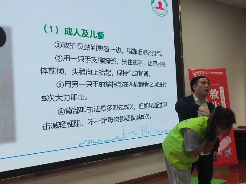培训会上,本次主讲师——重庆医科大学附二院急救部主管护师王信红老师,就心肺复苏、气道异物梗阻解除的专业知识进行了详细讲解,并且使用医用教学模具AED让现场学员们有机会进行实操模拟演练,以此来提升学习培训效果。