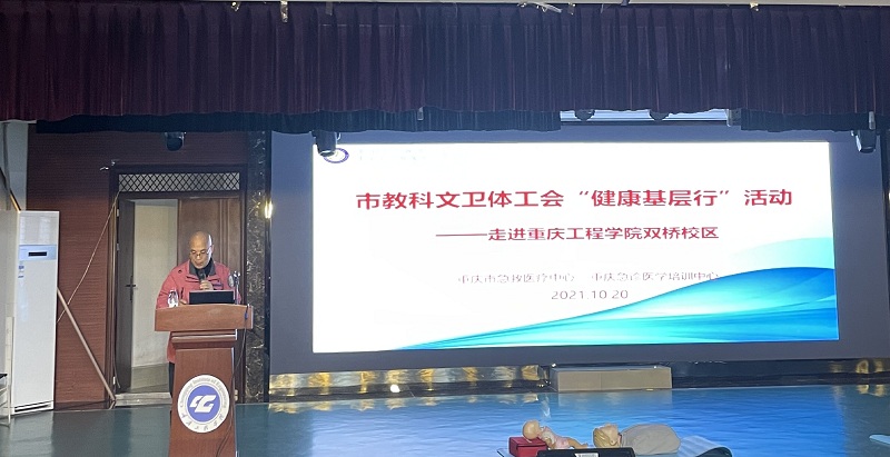 本网讯(文/图 通识学院 吕颖莉) 为提升师生健康意识,普及健康知识及急救技能, 10月20日下午14点,学校工会会同重庆市急救医疗中心(重庆市第四人民医院)在双桥校区报告厅组织开展了“健康基层行”急救技能培训。双桥校区全体专任教师、辅导员、生活老师和相关职能部门员工代表参加了此次培训。