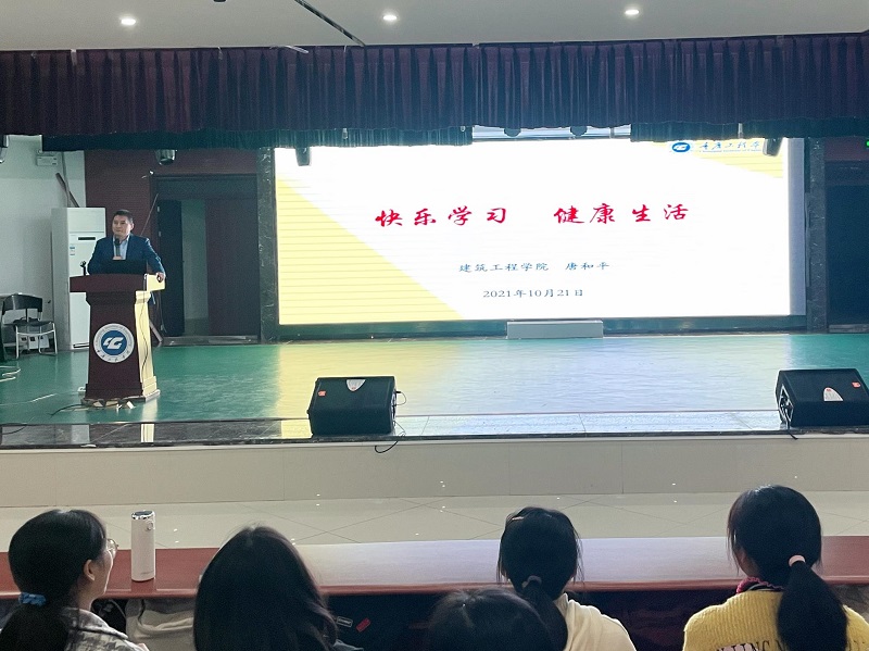 21日晚,建筑工程学院2021级新生见面暨入学教育会在双桥校区报告厅举行,会议由副院长汪金能主持。首先,雷江致辞,并介绍了学校学院情况,他要求大家利用好课堂主阵地、专注于专业实践、多参加专业竞赛及创新大赛,同时还要关注个人安全,正确处理好师生及同学之间关系,希望大家在大学四年里做到“成长、进步、成熟”。随后,唐和平以“快乐学习,健康生活”为主题从学业达标要求、大学学习生活建议要求、习惯培养建议、品性培养要求、身心健康培养建议、人身财产安全事宜提醒等方面对学生进行了学业及安全教育。