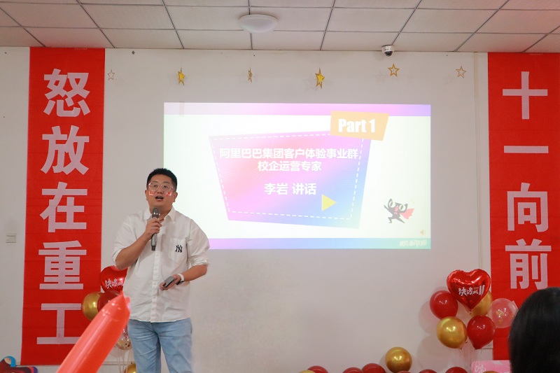 本网讯(文/图 管理学院 芦亚柯)10月29日下午,阿里巴巴新零售人才孵化基地在实习楼303开展“2021双十一启动会”。参与本次启动会的领导有阿里巴巴集团客户体验事业群-高级运营专家兼阿里巴巴CCO事业部·重庆工程学院管理学院联合党支部书记贺道春,阿里巴巴集团客户体验事业群-高级运营专家李岩,阿里巴巴集团客户体验事业群-高级运营专家郑美伊,阿里巴巴集团客户体验事业群-高级运营专家张利,校长助理简玉刚,管理学院副院长李英吉,重庆工程学院阿里巴巴新零售人才基地负责人曾霞。参与本次启动会的还有阿里实训基地的老师和同学代表。