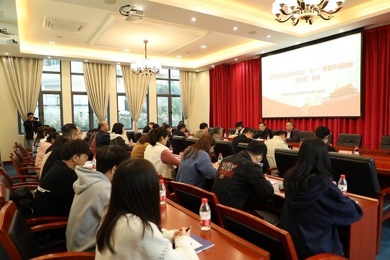 宣讲会上,邓沁泉副主任从提高深入学习领会习近平总书记“七一”讲话精神的思想认识、贯彻落实讲话精神促进学校各项事业高质量发展两方面重点进行了宣讲。他阐述了习近平总书记“七一”重要讲话的重大意义,强调讲话是一篇马克思主义中国化的纲领性文献,是新时代中国共产党人不忘初心、牢记使命的政治宣言,是中国共产党牢记初心使命、开创美好未来的时代答卷,是科学指引我们党和全国各族人民开创千秋伟业的行动纲领。深入解读了习近平总书记“七一”重要讲话中的一系列新思想、新观点、新要求,中国共产党百年奋斗的光辉历程、伟大成就、宝贵经验和实践启示,伟大建党精神的深刻内涵和时代价值,在新征程上以史为鉴、开创未来的根本要求和伟大号召。